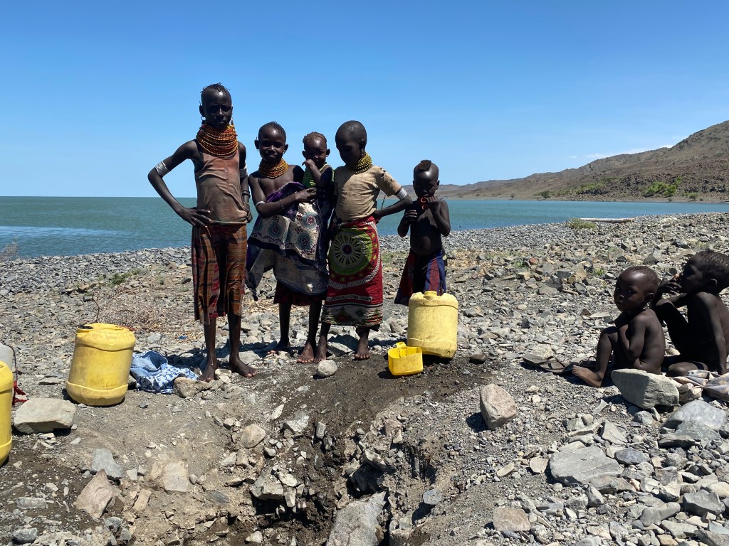 Les Turkana sont des éleveurs nomades du nord du Kenya qui se déplacent de manière saisonnière à la recherche de pâturages pour leurs troupeaux. La sècheresse qui sévie depuis plusieurs années maintenant les a poussés à développer de nouvelles stratégies d’élevage et préservation de leur bétail, mais également de leur mode de vie et source d’alimentation. Sur les rives du lac Turkana, des centaines de familles se tournent vers la pêche pour faire face aux besoins familiaux que seul l’élevage ne permet plus d’assurer. L’accès à l’eau potable dans cette zone aride du Kenya est plus que complexe, exacerbée par les sécheresses prolongées et la nature salée et fortement basique des eaux du lac. Bien qu’impropre à la consommation pour des raisons sanitaires, l’eau du lac Turkana est quotidiennement utilisée par les habitants pour boire et cuisiner.